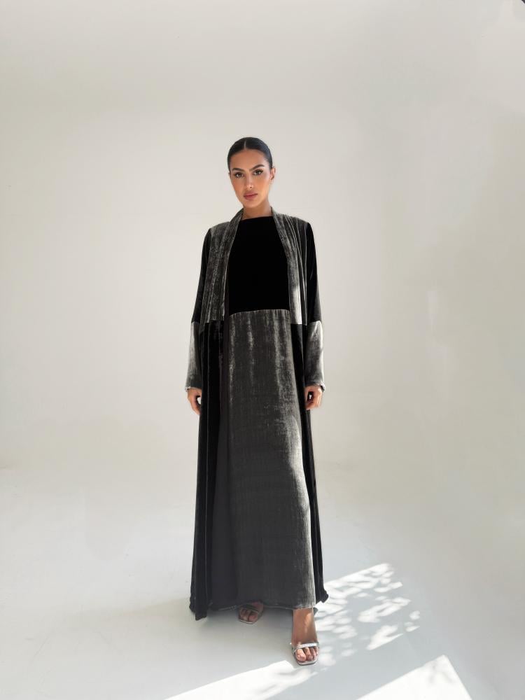 عباية شتوية بلون مميز من قماش المخمل الحرير الطبيعي