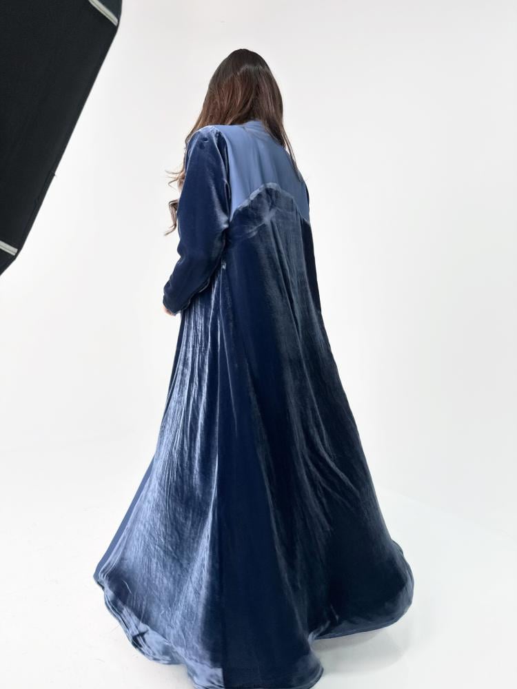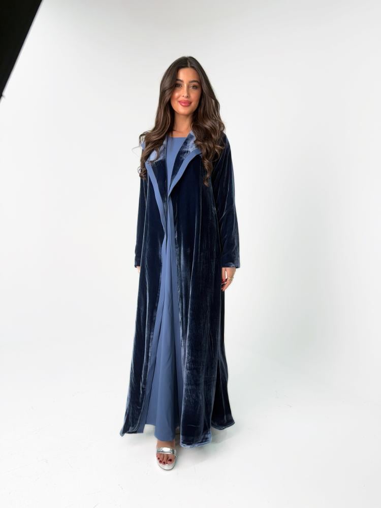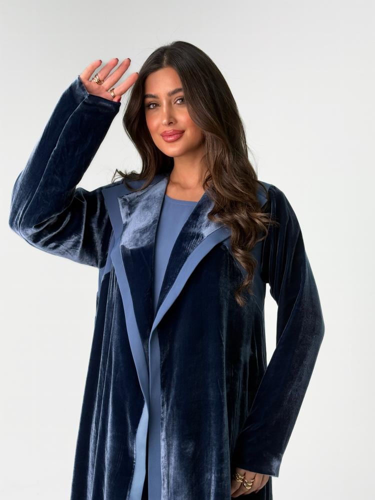 عباية شتوية بلون مميز من قماش المخمل الحرير الياباني