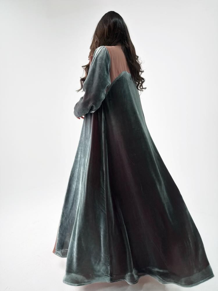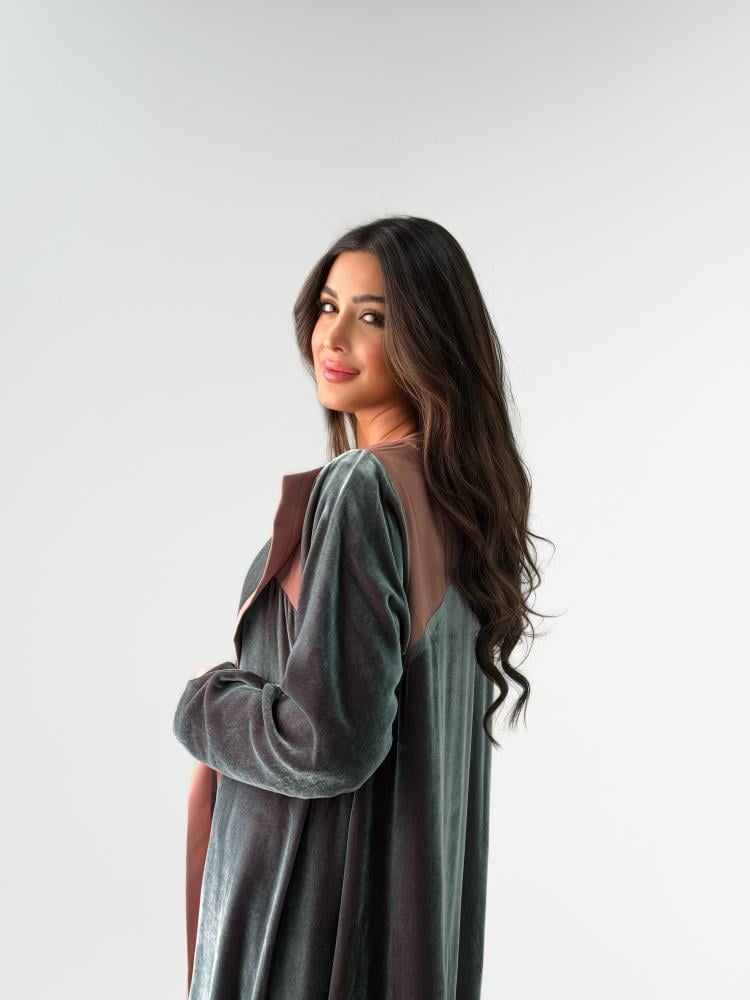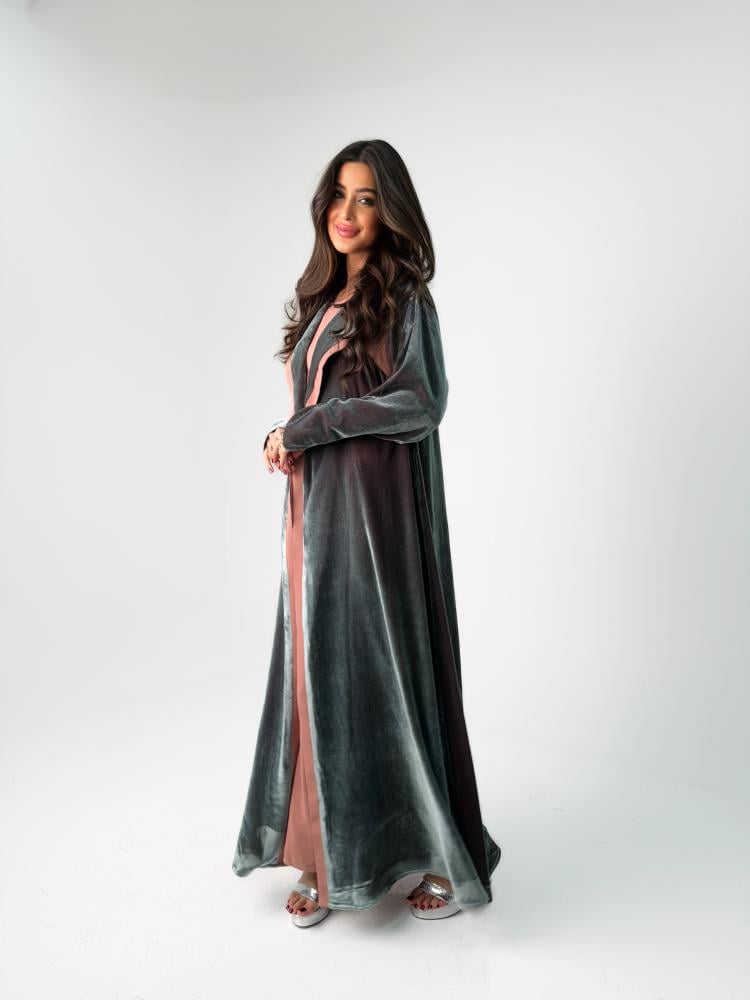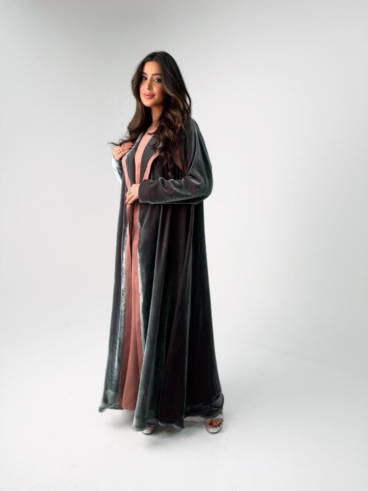 عباية شتوية بلون مميز من قماش المخمل الحرير الياباني