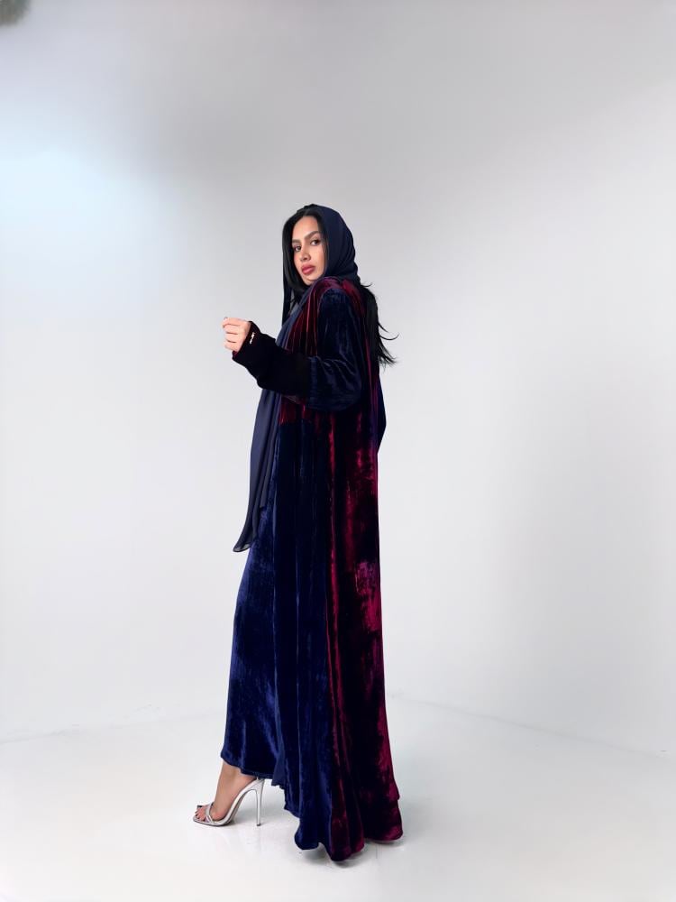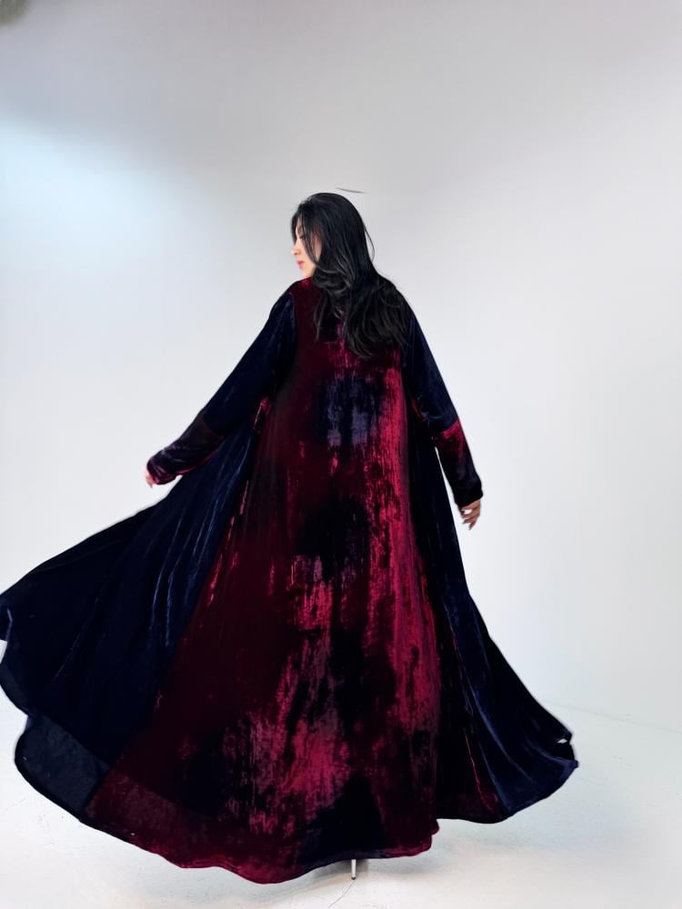 عباية مطبوعة مع فستان بقماش المخمل الحرير ناعم ومميز