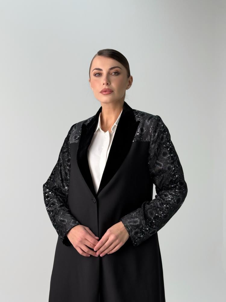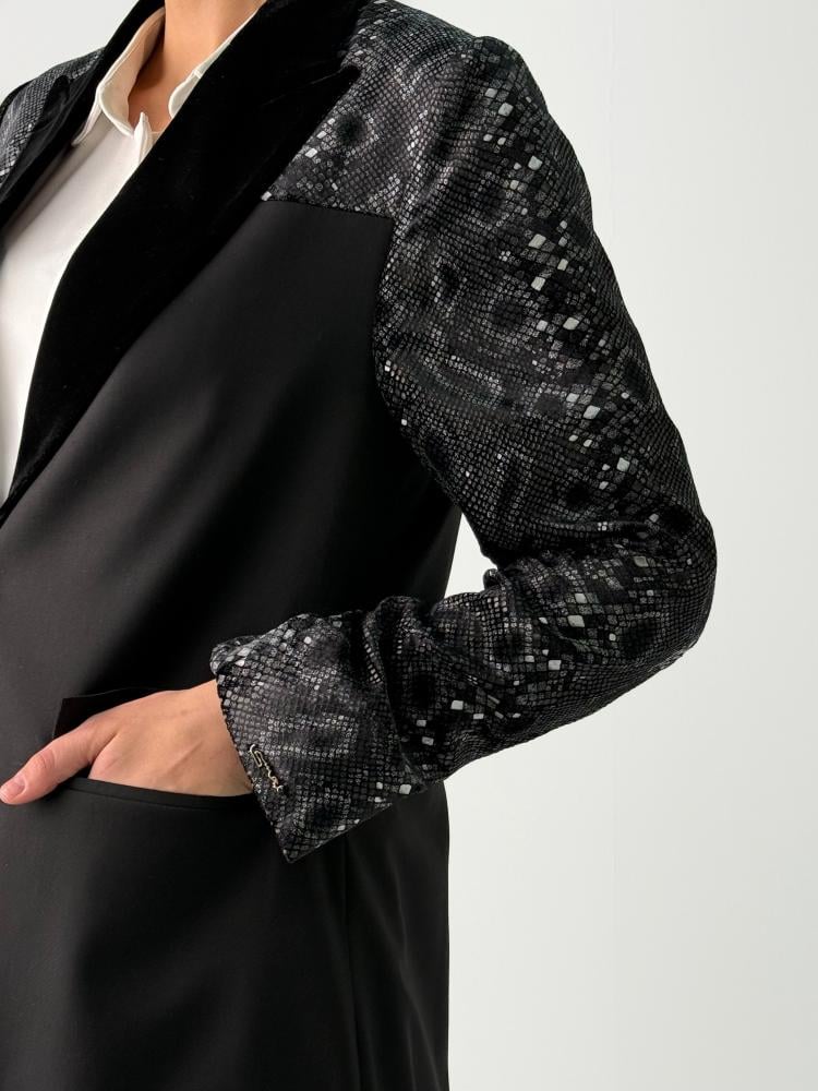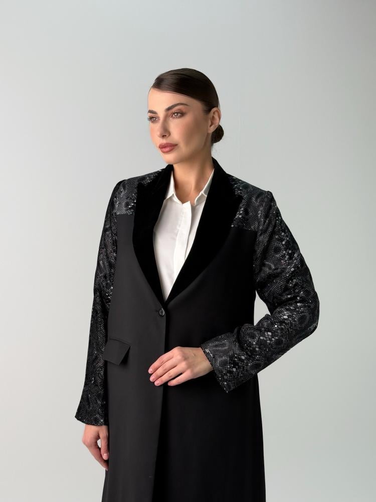 عباية بليزر أنيقة ورسمية من قماش المخمل الايطالي المطبوع بنمط افعى