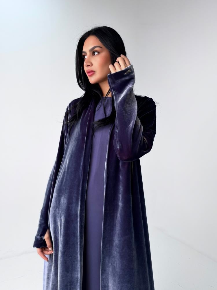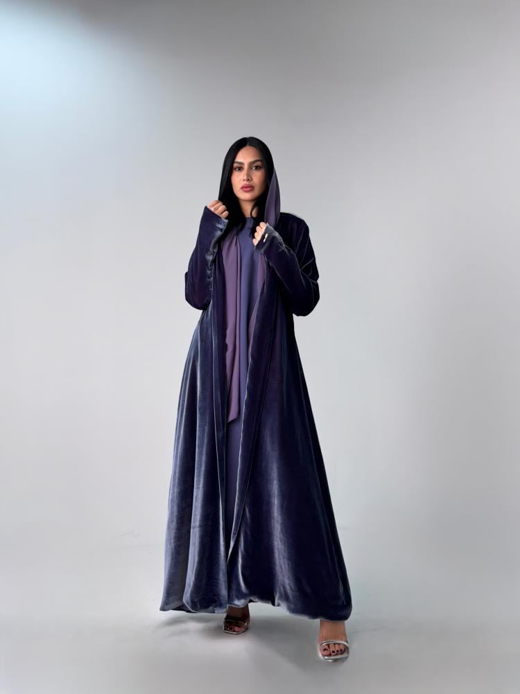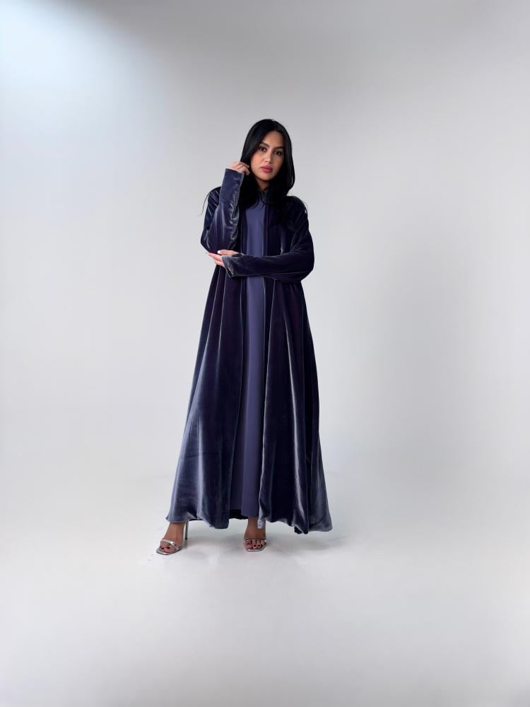 عباية مع فستان بقماش المخمل الحرير الفرنسي ناعم ومميز